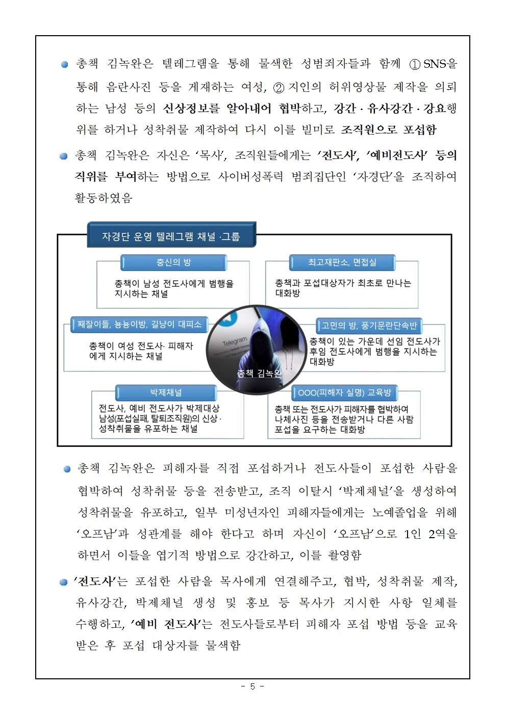 이 과정에서 김녡완은 직접 가학적인 성폭행을 하며 촬영하기도 했고, 조직원들에게 역할을 분담시켜 피해자 물색·관리·협박·촬영·유포를 체계적으로 운영했습니다.
