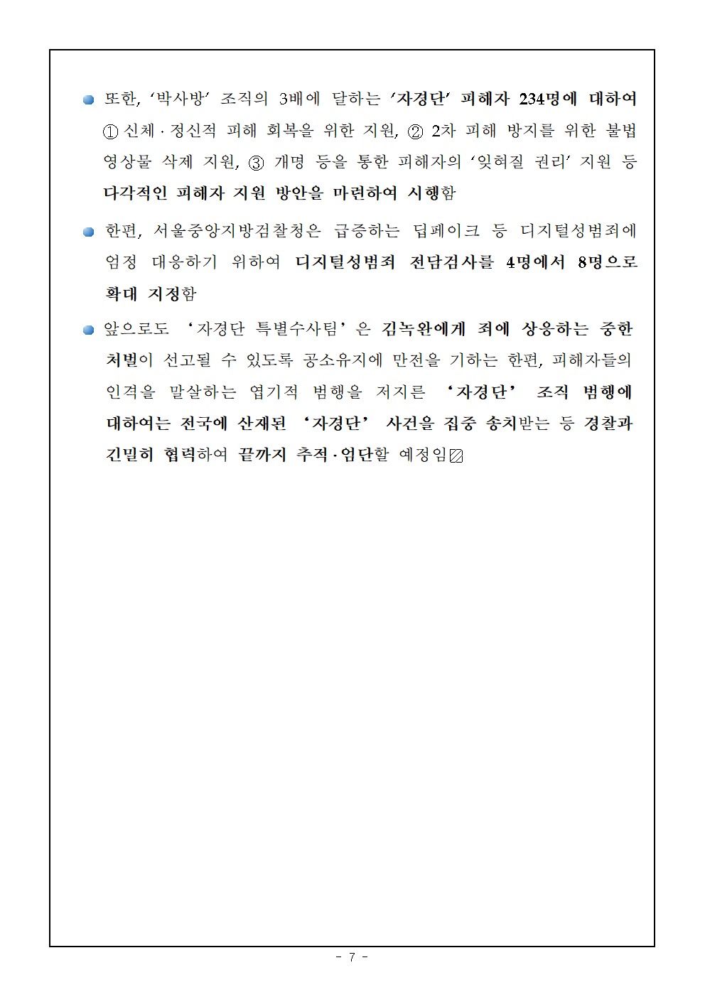 - 약 70명의 미성년자를 대상으로 1,700개의 아동·청소년 성착취물 제작