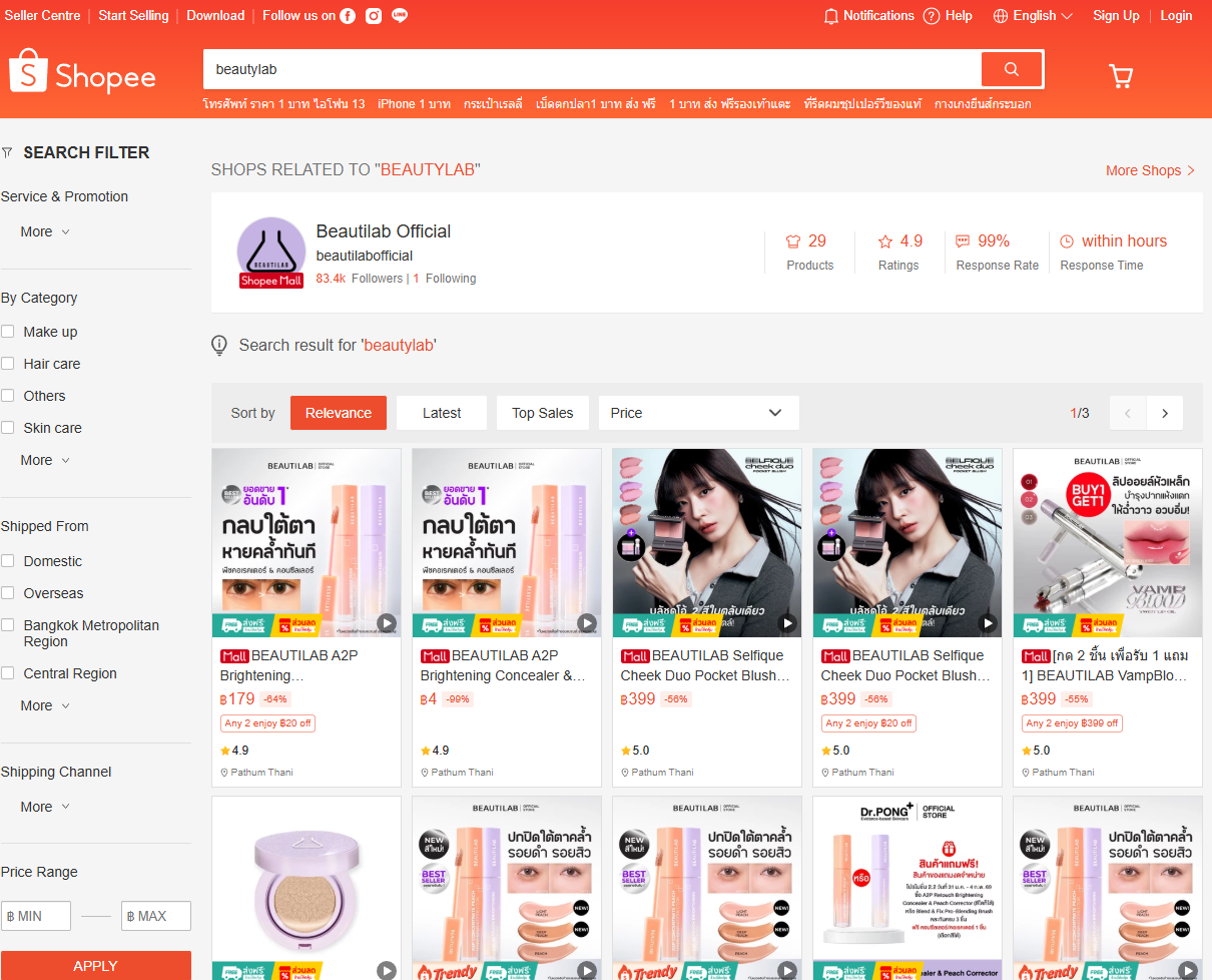Shopee 태국 시장을 기준으로