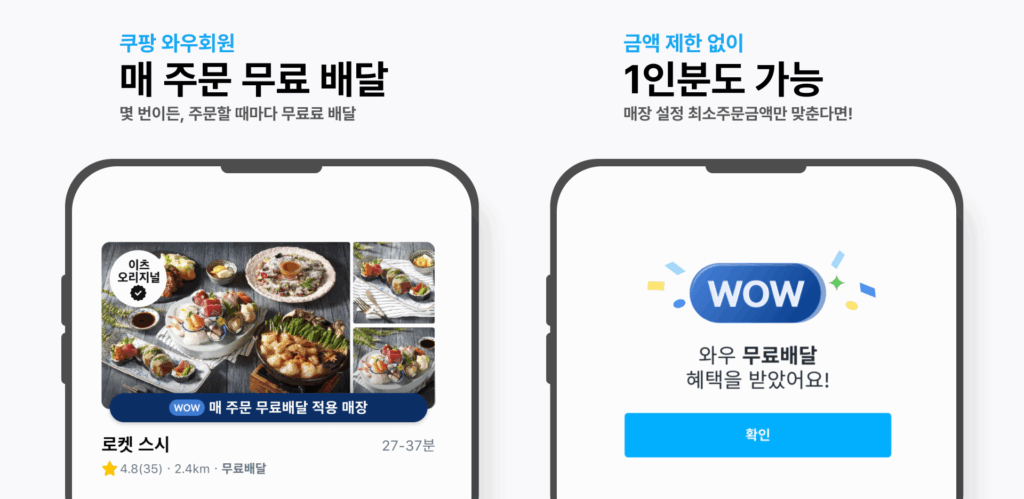 쿠팡이츠의 성장 비결은 단연 와우 멤버십과 연계된 무료 배달입니다.
